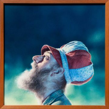 Das fotorealistische Aquarell zeigt ein Portrait von Friedensreich Hundertwasser.