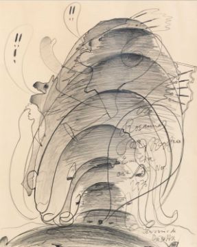 Tusche und Bleistift auf leichtem Karton.