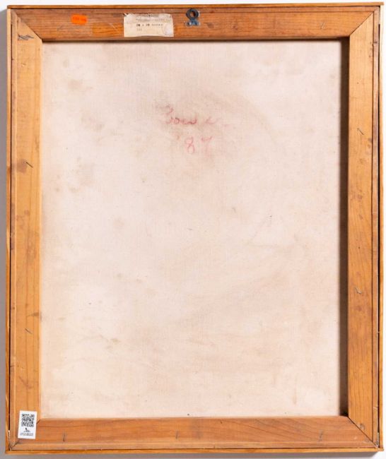 Verso in roter Ölfarbe signiert und datiert: Bowes, 87. Sowie mit Stempel von Lucio Amelio.