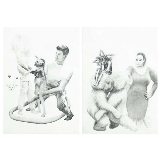 Zwei Zeichnungen mit Bleistift, jeweils auf Papier.