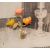 Offset auf Leinwand, mit Objektapplikationen (drei rosenförmige Kerzen, zwei versilberte Kerzenhalter, Wachs), auf Holzplatte montiert.