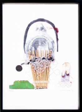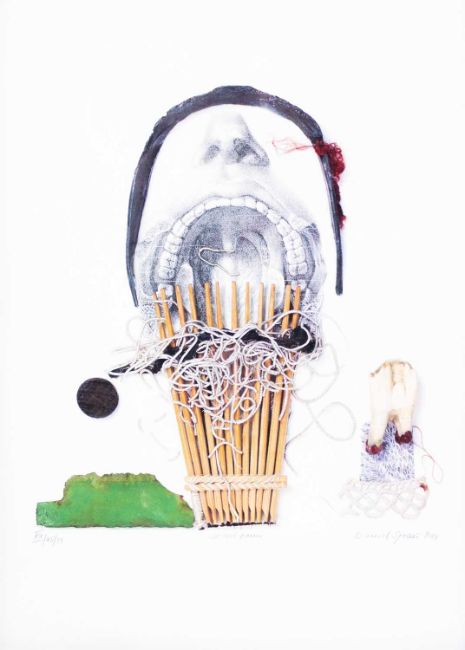 Am unteren Blattrand mit Bleistift signiert, betitelt, datiert und nummeriert: Daniel Spoerri, Maulzaun, 2001, XIV/45/99.