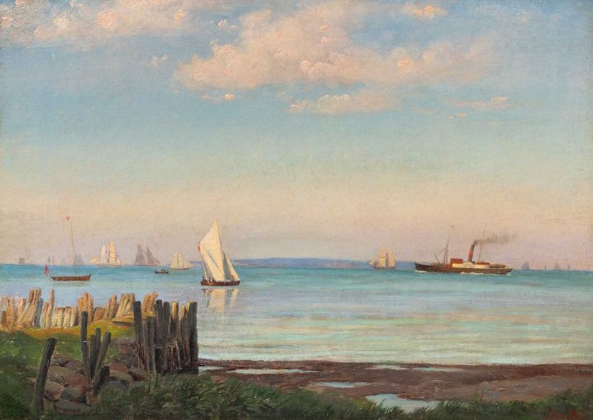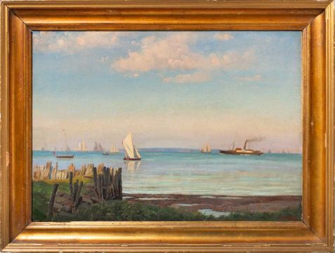 Küstenlandschaft mit Booten. 1862.