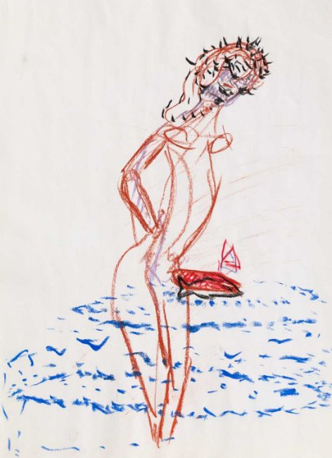 Verso am unteren Blattrand mit lilafarbenem Buntstift monogrammiert und datiert: C.W., '99.