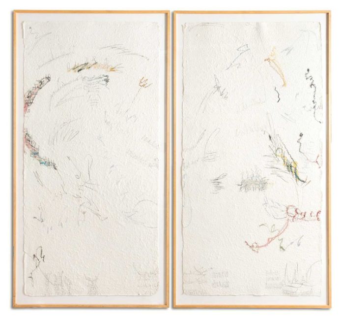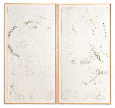 Diptychon. Wachsölstift, Öl, Bleistift und Graphit, jeweils auf Papier.