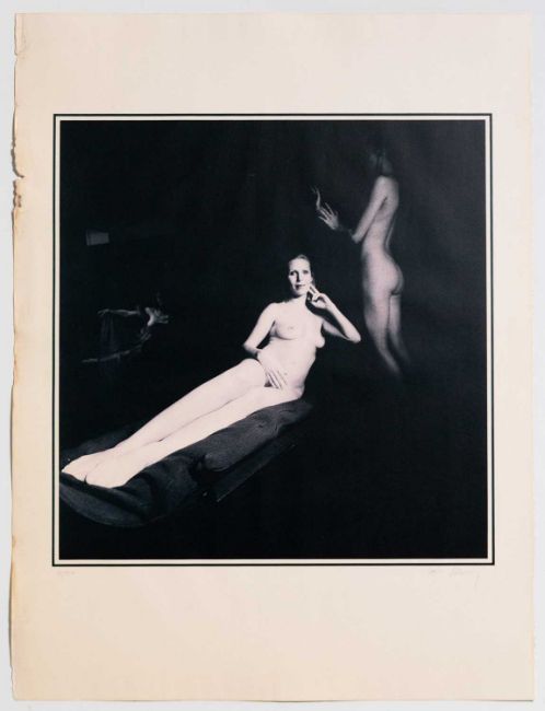 Lichtdruck auf leichtem Karton/Farboffset auf leichtem Karton nach der Zeichnung "Jutta 77" aus 1977.