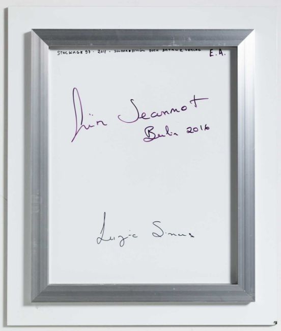 Verso mit schwarzem Marker signiert, betitelt, gewidmet, datiert und nummeriert: Luzia Simons, Stockage 97, 2011, E.A.