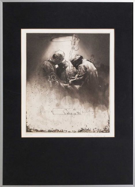 Farblithografie bzw. Aquatintaradierung auf Velin.