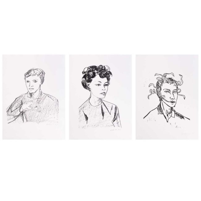 Zwei Lithografien sowie ein Holzschnitt, jeweils auf Bütten.