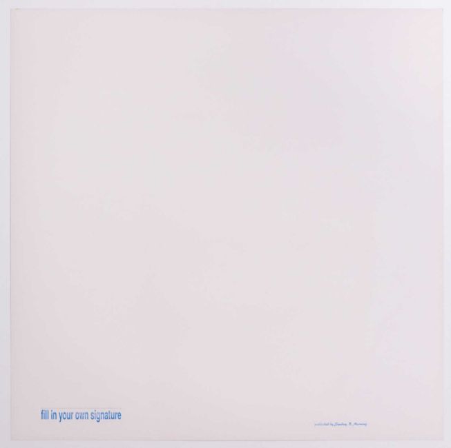 Warhol entschied sich aber anders. Die illegalen Kopien wurden durch ihn legalisiert, indem er den Produzenten zwang, jedes Exemplar auf der Rückseite mit den Stempeln „published by Sunday B. Morning“ und „Fill in your own signature“ zu versehen.