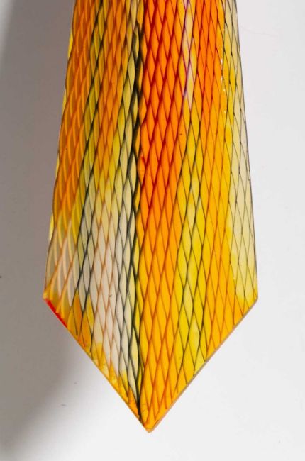 Farbiges Papier gefaltet, in Kunstharz gegossen.