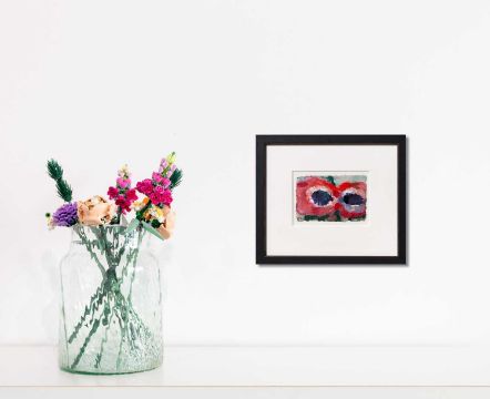 Im Passepartout freigestellt und unter Museumsglas gerahmt: 27,8 x 32 cm.