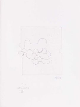 Radierung und Prägedruck auf Faltblatt aus Velin. Sowie Lithografie mit Text aus "Ce maudit moi" von E.M. Cioran.