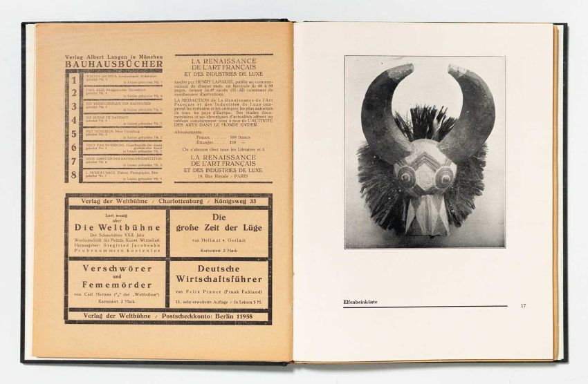 Buch mit Offsets auf Glanzpapier sowie gedrucktem Text auf chamoisfarbenem Papier.