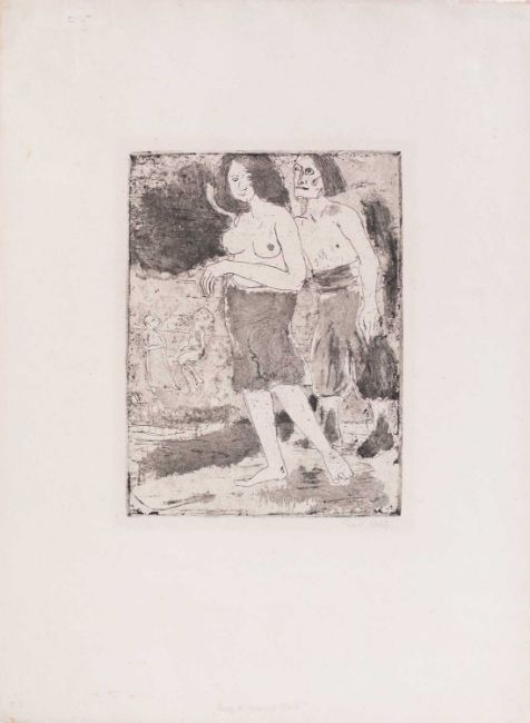 Unterhalb der Darstellung mit Bleistift signiert sowie am unteren Blattrand betitelt und nummeriert: Emil Nolde, Mann u. junges Weib, II.5.
