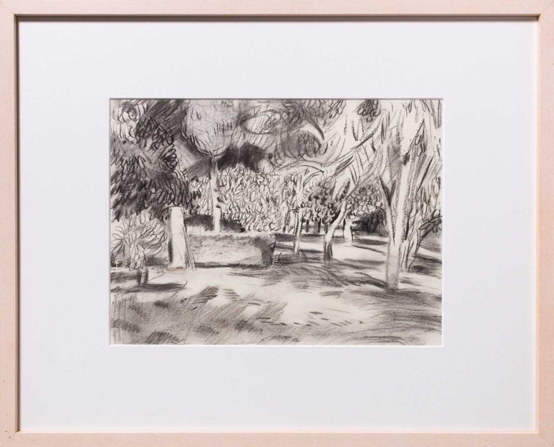 Unter einem Passepartout und unter Glas gerahmt: 42,2 x 52,2 cm.