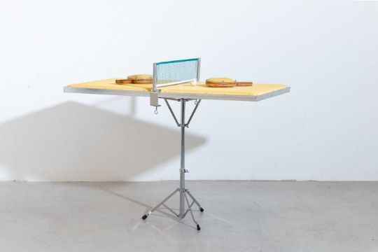"Silent Ping-Pong" des US-amerikanischen Konzeptkünstlers Bill Beckley wurde erstmals um 1971 in New York in SoHo ausgestellt, damals als Installation aus vier identischen Tischtennistischen mit Schaumstoffbezug. Im Folgejahr entstand von diesem Werk eine Auflage von 25 Exemplaren. Beckley gehörte mit Gordon Matta-Clark, Bill Bollinger u.a. zu den Mitbegründern von 112 Greene Street: einem angesagten, künstlergeführten Ort, an dem zahlreiche Künstler der New Yorker Avantgarde in den 1970er Jahren ihre neuesten Werke erstmals ausstellten. "Silent Ping-Pong" ist ein humorvoller Kommentar auf die Konventionen des Spiels und eine Reflexion über den Effekt von Materialität und Klang auf alltägliches Erleben.