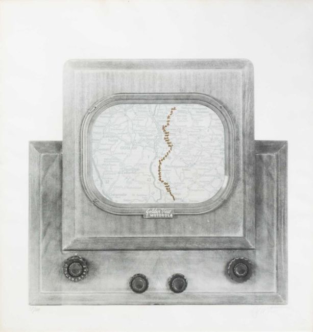 Radierung und Offset mit goldfarbenem Aufdruck auf Velin.