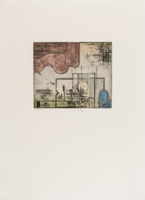 Zehn Farbradierungen auf Rives Büttenpapier. Jeweils mittig unten mit Bleistifts signiert und links unten nummeriert, Exemplar 23/150. Unterschiedliche Plattenmaße, Blattmaß 37,8x 28,2 cm. Beigegeben: Vier Deckblätter.