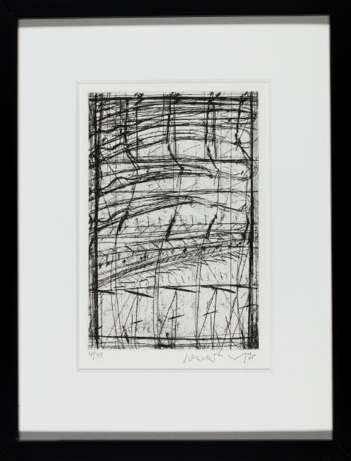 Radierung auf Velin. Rechts unten mit Bleistift signiert und datiert (19)75 sowie links unten nummeriert, Exemplar 41/99. Plattenmaß 23,8x 15,8 cm, Blattmaß 33,6x 23 cm. Unter einem Passepartout und unter Glasgerahmt, 42,3x 32,3 cm.