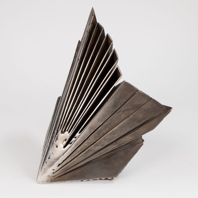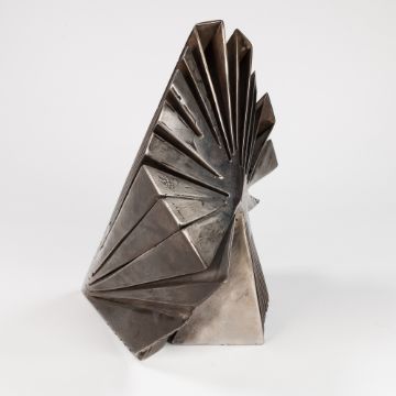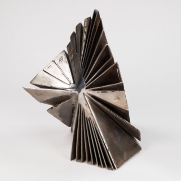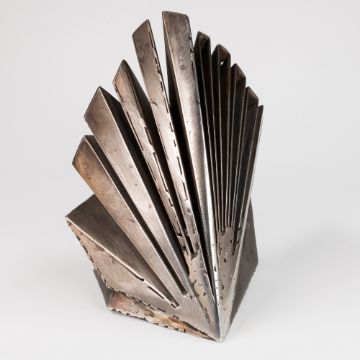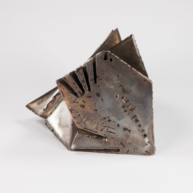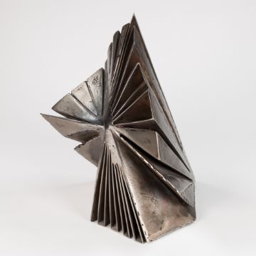 Partiell polierter Stahl. Auf der Unterseite signiert. 23x 19,5x 15 cm.