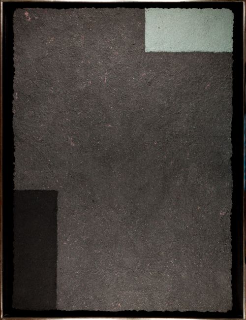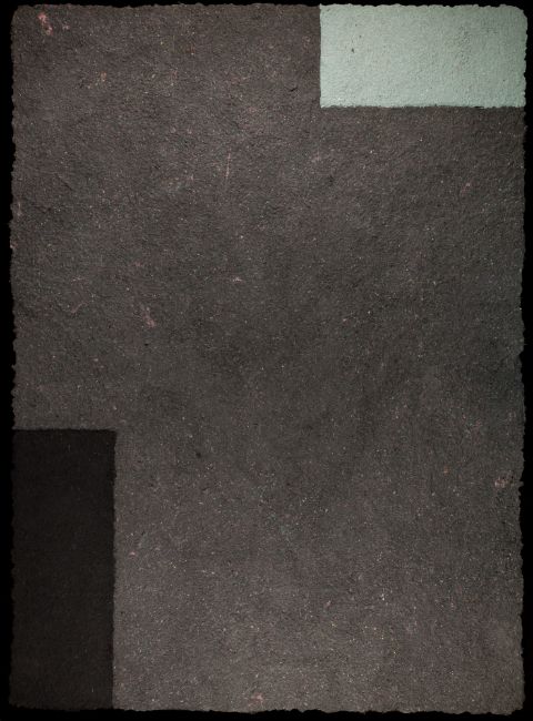 Pigmentierter Baumwollpulp und farbige Hadern auf hinterlegtem Japanpapier. Verso signiert, datiert 1991 und nummeriert, aus einer Auflage von 15 unikatähnlichen Exemplaren. 147,5x 107 cm. Im Modellrahmen mit Schattenfuge gerahmt, 157,5x 119,5x 5 cm.