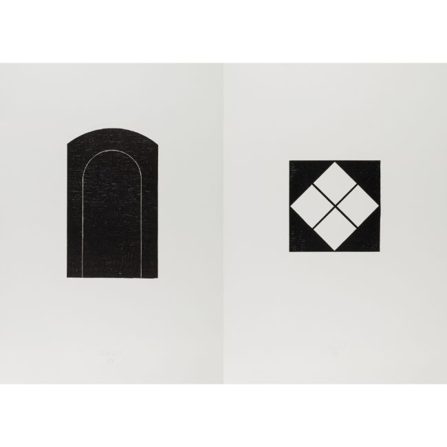 Zwei Holzschnitte auf Papier. Jeweils mittig unten mit Bleistift signiert und datiert (19)84. Blattmaß 50x 35 cm.