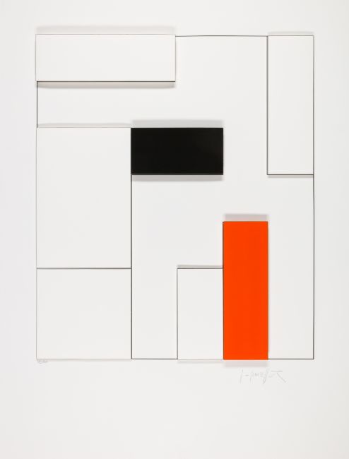 3D-Serigraphie auf Karton. Rechts unten mit Bleistift signiert sowie links unten nummeriert, Exemplar 43/50. Bildmaß 55,5x 47,5 cm, Blattmaß 80x 61 cm.
