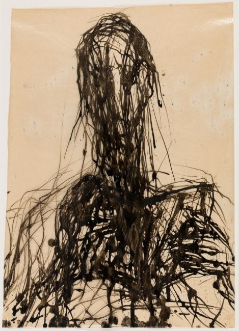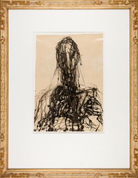 Tusche auf chamoisfarbenem Japanpapier. Rechts unten mit Bleistift signiert und datiert (19)84. Blattmaß 47x 33,5 cm. Im Passepartout freigestellt und unter Glas im Conzen Modellrahmen gerahmt, 85,5x 67 cm.