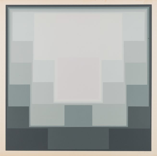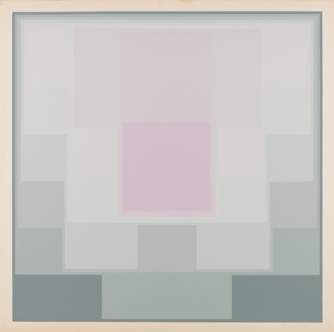 Mappenwerk mit fünf Farbsiebdrucken auf Velin. Jeweils rechts unten mit Bleistift signiert. Edizioni del deposito. Bildmaß 37x 37 cm, Blattmaß 40x 40 cm.