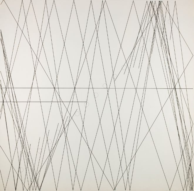 Faserstift auf Millimeterpapier. Rechts unten mit Bleistift signiert, datiert 1971 und betitelt. Bild-/Blattmaß 83x 84,2 cm.