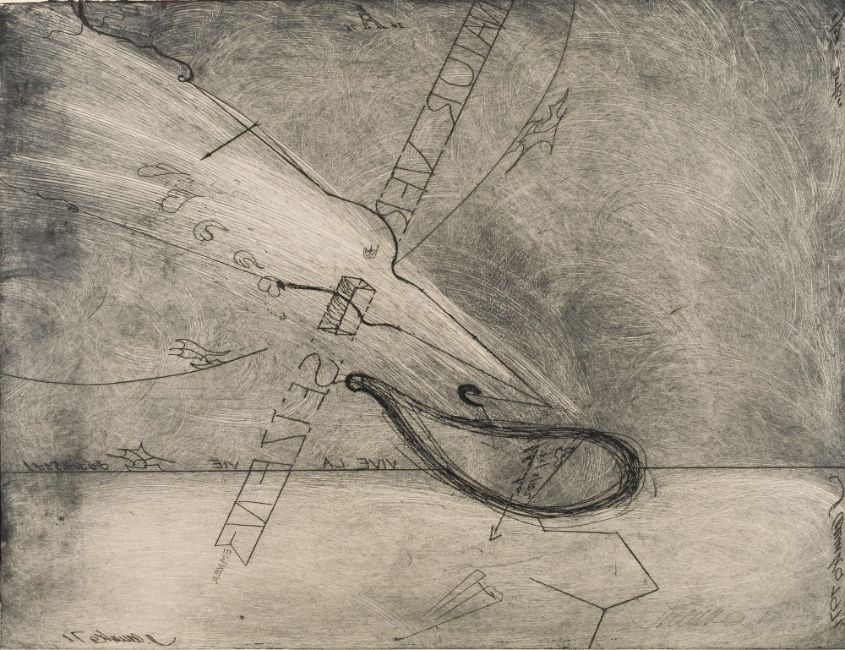 Aquatinta-Radierung auf Velin. Rechts unten mit Bleistift signiert und datiert (19)71 sowie verso nummeriert, Exemplar 7/320. Bild-/Blattmaß 63x 48,5 cm.