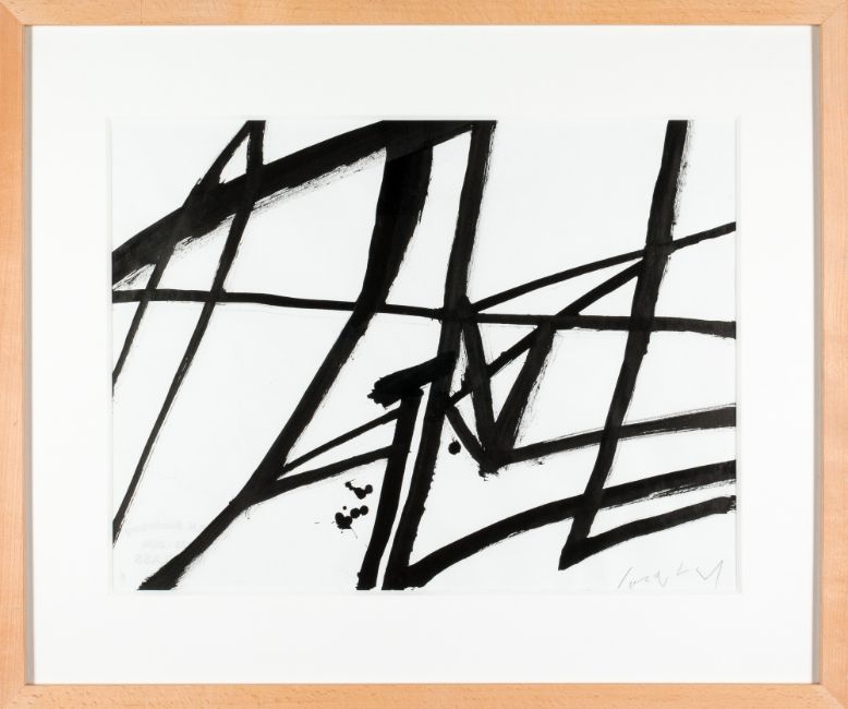 Acryl auf Papier. Rechts unten mit Bleistift signiert, verso Nachlassstempel. Passepartoutausschnitt 35x 46,5 cm. Unter einem Passepartout und unter Glas gerahmt, 53x 63 cm.