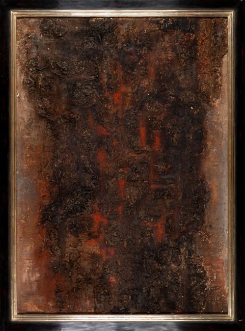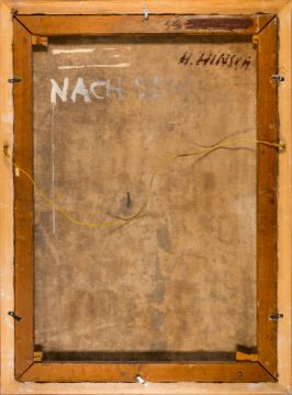 Mischtechnik auf Leinwand. Links unten schwer leserlich signiert (Hanne Hirsch?) und datiert (19)59 sowie verso bezeichnet und signiert. 91x 65 cm. Im Modellrahmen gerahmt, 99,5x 73,5 cm.