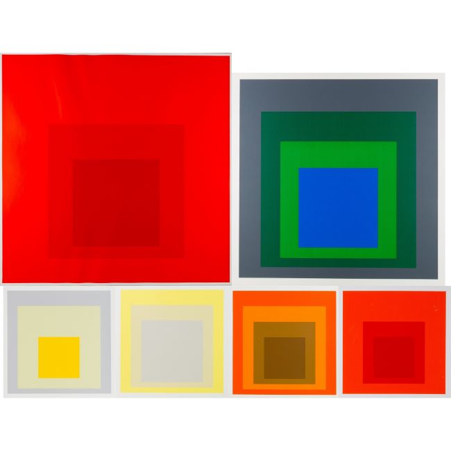 Sechs Serigraphien bzw. Siebdrucke auf leichtem Karton. Bildmaß 18,5x 18,5 bis 59,5x 59,5 cm, Blattmaß 20,8x 20,8 bis 61x 61 cm.