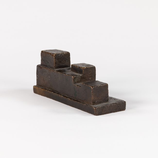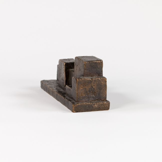 Dunkelbraun patinierte Bronze. Seitlich monogrammiert ST und nummeriert, Exemplar 29/30. 5,6x 13,7x 4,7 cm.