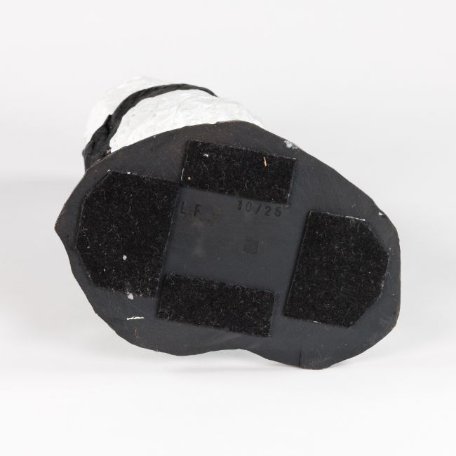 Weiß und schwarz patinierte Bronze (Plinte grünlich patiniert). Auf der Unterseite monogrammiert LF und nummeriert 10/25 sowie Gießerstempel Kunstguss Eschenburg Lahn-Dill GmbH. 21,5x 12x 9,5 cm.