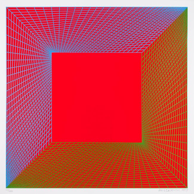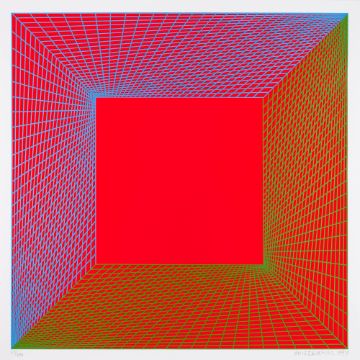 Serigraphie auf Papier. Rechts unten mit Bleistift signiert und datiert 1997 sowie links unten nummeriert, Exemplar 65/100. Bildmaß 55x 55 cm, Blattmaß 59x 59,5 cm.