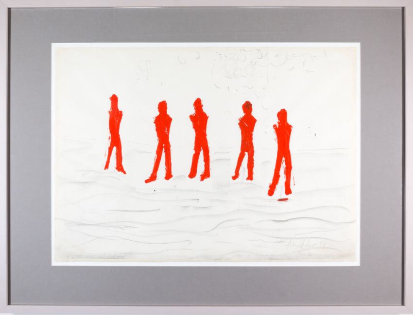 Mischtechnik auf Papier. Rechts unten mit Bleistift signiert, datiert (19)94 sowie Ortsbezeichnung Berlin. Bild-/Blattmaß 49,5x 70 cm. Gerahmt unter Glas und freigestellt in einem Passepartout, 73x 96 cm.