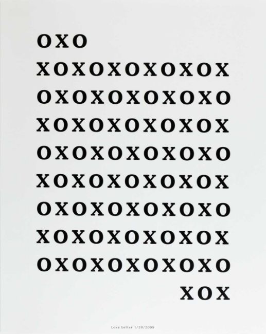 Kay Rosen (1943 Corpus Christi, Texas - lebt in New York) Love Letter. 2009.Offset-Print auf Optigloss.51 x 40,5 cm.Im Objektrahmen freigestellt und unter Glas gerahmt: 61,5 x 51 cm.Herausgeber: Klosterfelde Editionen, Berlin. Edition von 100 Exemplaren.Provenienz:Privatsammlung, Berlin.