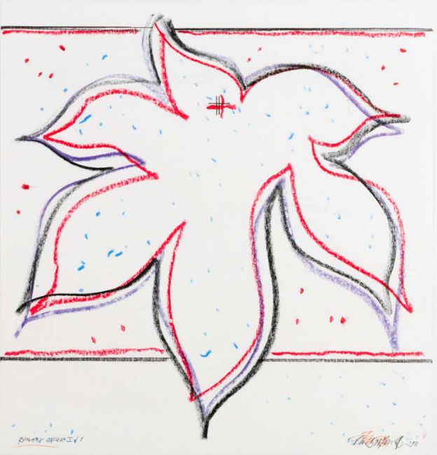 Johannes Gachnang (Schweiz 1939-2005) Binary Star I/1 / Ohne Titel. 1998.Wachskreide auf Papier / Farbithografie auf Papier.Jeweils unterhalb der Darstellung mit Bleistift signiert und datiert: Johannes Gachnang, '98. Sowie einmal betitelt und einmal nummeriert: Binary Star I/1, 9/12.30 x 28,5 cm / 33,5 x 34 cm.Jeweils unter Glas gerahmt: 42,3 x 42,3 cm.Provenienz:Nachlass Reinald Nohal, Mitbegründer der Paris Bar, Berlin.Story:Irmelin Nohal: "Wir haben diese Bilder gekauft, weil wir ihn liebten. Gachnang hat uns Postkarten geschrieben, in der kleinsten Schrift. Wunderschön und geschwungen."Johannes Gachnang war ein berühmter Ausstellungs-Macher, er kuartierte beispielsweise "Der gekrümmte Horizont" aus der wir eine Lüpertz Zeichnung versteigern: siehe Lot 22. Gemeinsam mit ihm besuchten sie ein Kirkeby Symposium in Jütland, Dänemark. Gachnang sprach dort über Kirkeby.