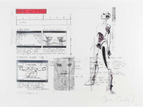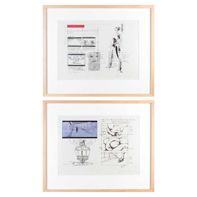 Zwei Farboffsets nach einer Storyboard-Zeichnung, jeweils auf Velin.