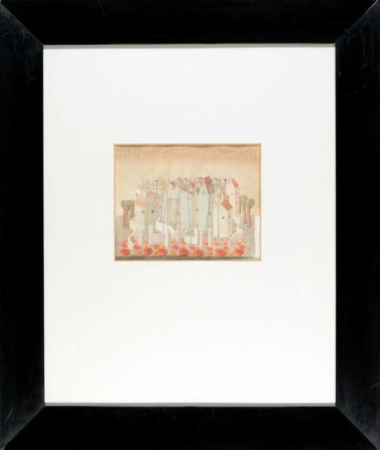 Unter Passepartout und Glas gerahmt: 58,5 x. 49,5 cm.