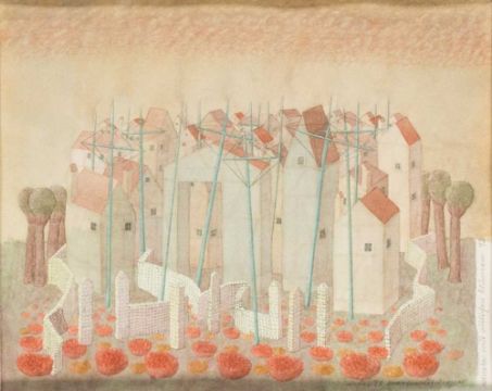 Rechts unten signiert, betitelt und datiert: Martin Dittberner, Vineta mit rötlichen Blumen, 1973.