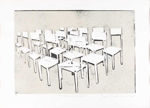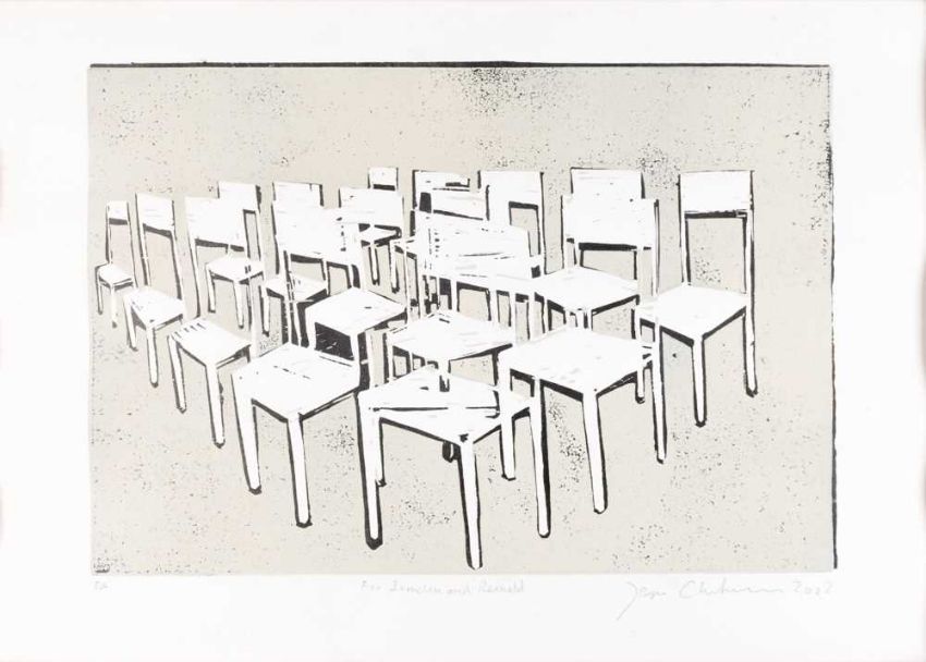 Zwei Grafiken: jeweils Linolschnitt auf Papier.