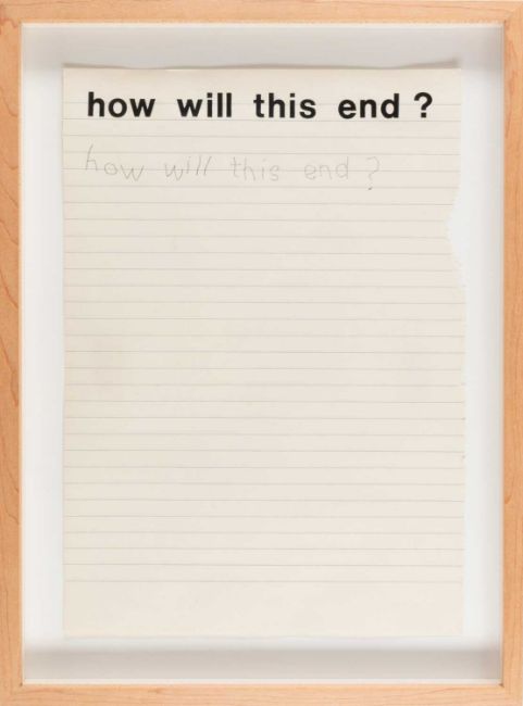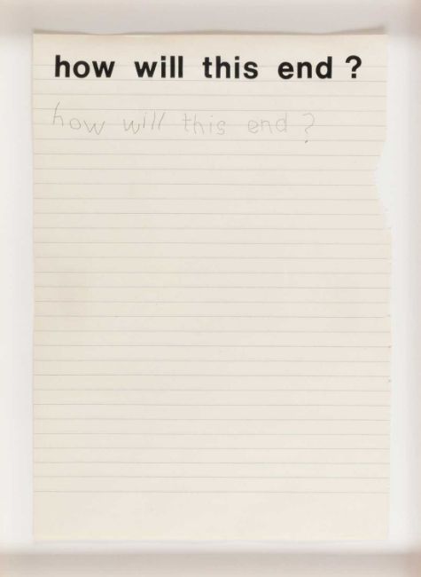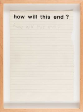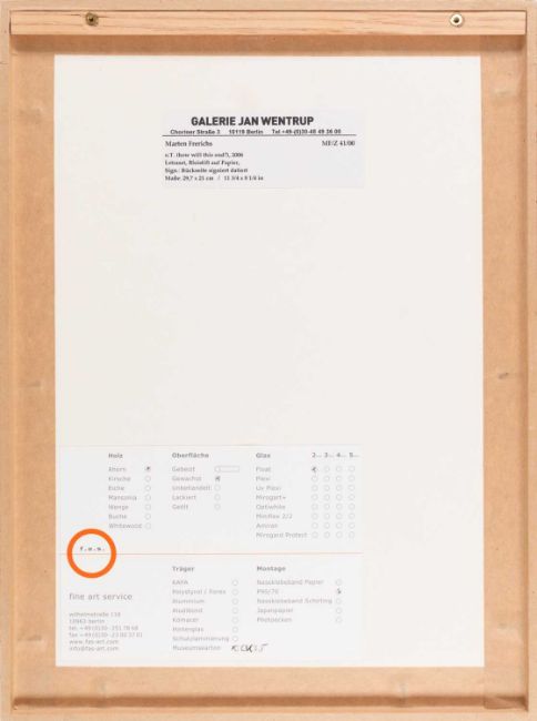 Marten Frerichs (1967 Norh Shields (UK) – lebt in Berlin) how will this end?. 2006. Letraset, Bleistift auf Papier. Verso signiert und datiert: M. Frerichs, 2006.Blattmaß: 29,7 x 21 cm. Im Objektrahmen unter Glas gerahmt: 35 x 26 cm. Verso mit einem Etikett der Galerie Jan Wentrup, Berlin.Provenienz:Privatsammlung, Berlin.