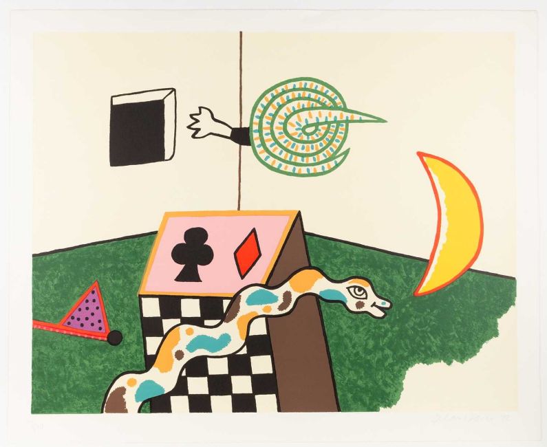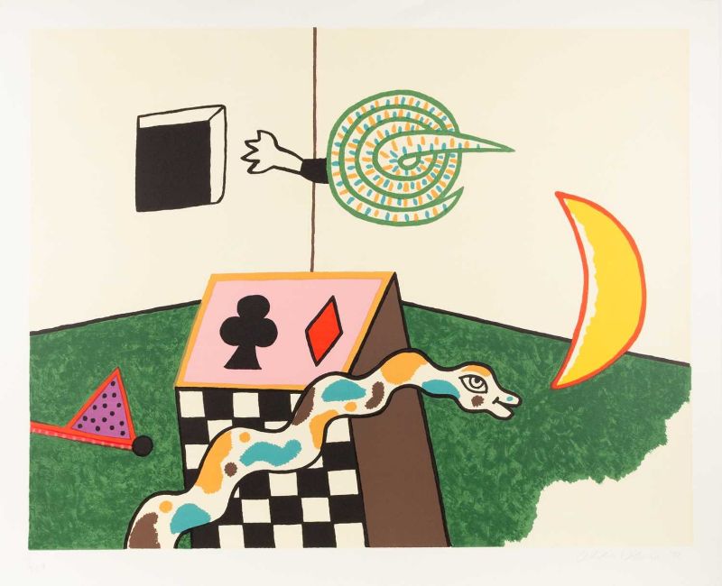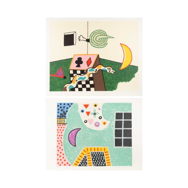 Alan Davie (1920 Schottland – England 2014) Snake Box. 1972 / Ohne Titel. 1971.Zwei Lithografien, jeweils auf Velin. Jeweils am unteren Blattrand mit Bleistift signiert, datiert und nummeriert: Alan Davies, '72 / '71, 31/120 / 173/200. Blattmaße: 59,5 x 72,5 cm bzw. 56,5 x 75,5 cm.Provenienz:Privatsammlung, Niedersachsen.