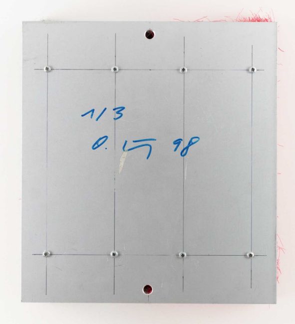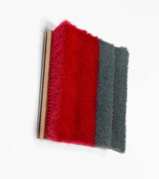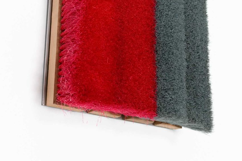 Ottmar Hörl (1950 Nauheim – lebt in Nürnberg) Besenstück (grau/rot). 1998. Besen auf Aluminium.Verso mit Edding signiert, datiert und nummeriert: O. Hörl, 98, 1/3.Bildmaß: 32,2 x 28,8 x 9,8 cm.Provenienz:Privatsammlung, Berlin."Hörls Besen sind Graubner in Baumarkt." (Ivo Wessel)