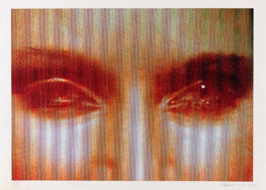 Katharina Sieverding (1941 Prag – lebt in Düsseldorf) Ohne Titel. 2002. Farblithografie auf Papier. Am unteren Blattrand mit Bleistift signiert, datiert und nummeriert: Sieverding, 2002, 1/XX. Blattmaß: 50 x 70 cm.Provenienz:Privatsammlung, Berlin.