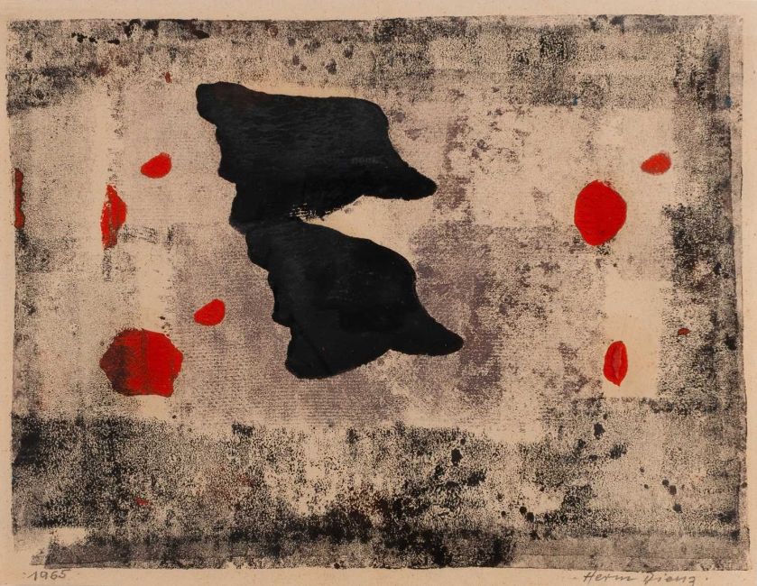 Am unteren Blattrand mit Bleistift signiert und datiert: Herm Dienz, 1965.